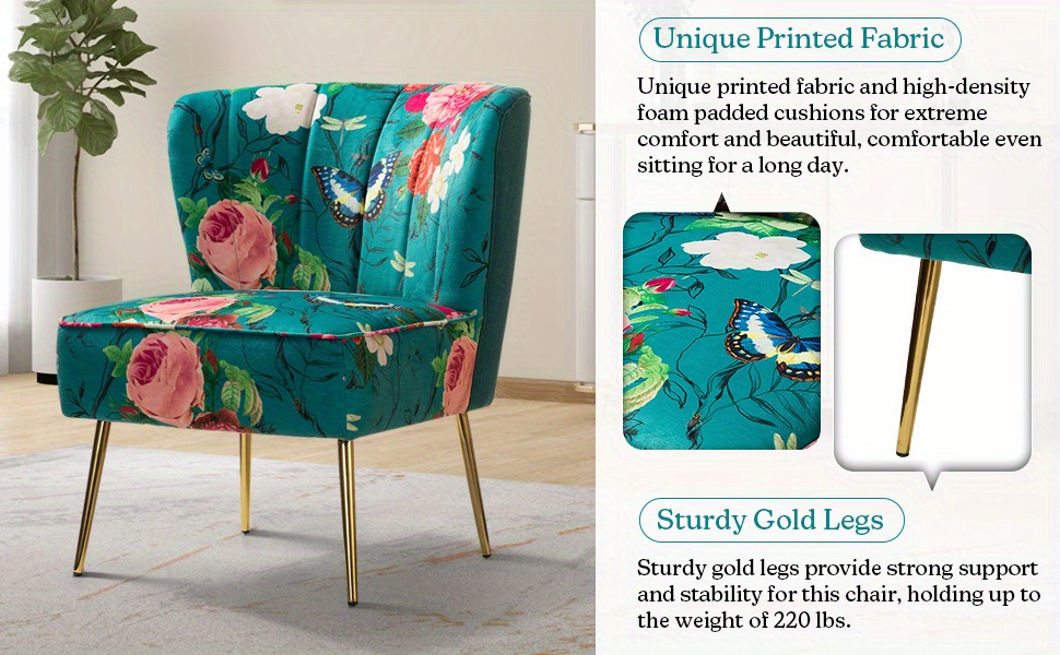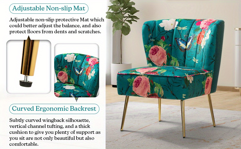 Sit Gracefully And Comfortably With "TINA'S HOME" Chair This Gorgeous Chair Adds Color And Personality To Your Space. The Charming Armless Design Makes It A Good Choice For Smaller Spaces And Can Be Paired With A Variety Of Decor Styles From Bohemian To Modern Glam! Made Of Soft-touch, High-quality Padded Polyester Fabric That Is Very Delicate To The Touch And Non-irritating To Sensitive Skin.