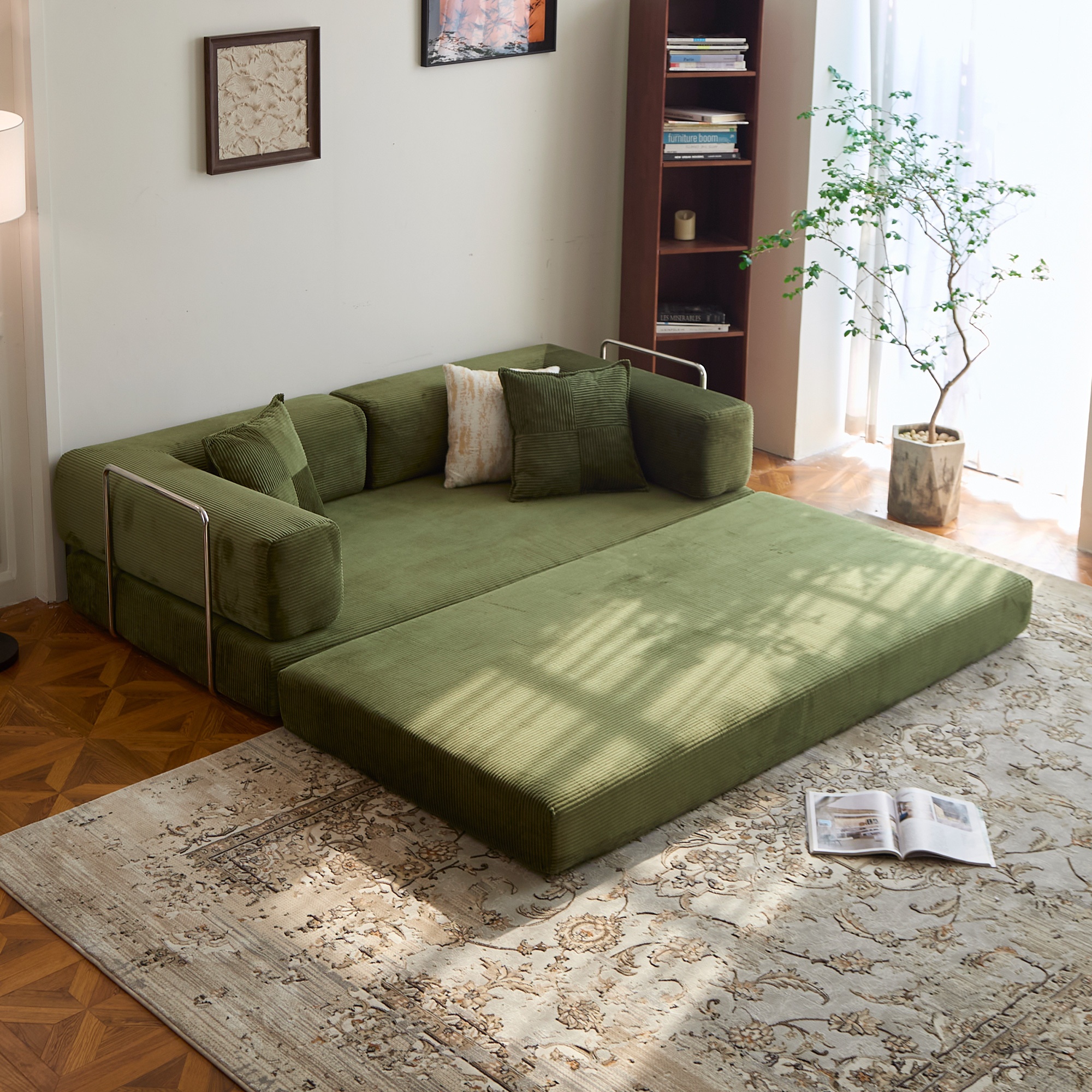 Versatile Space. A sofa, infinite possibilities. It offers four configurations, easily transforming into a sofa bed to meet various needs such as relaxation, movie watching, parent-child activities, or short breaks. Free combination, stimulating creativity, and saying goodbye to monotony.